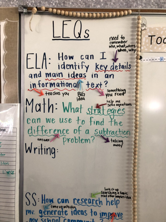 - Refer to the question during the lesson often to gather evidence of learning throughout the lesson and to maintain focus