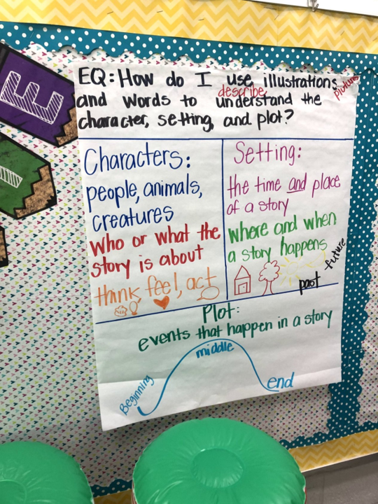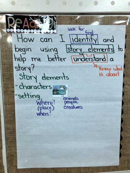 The primary standard for an upcoming lesson is RL.K.2 which expects students to retell familiar stories, including key details. The most important verb is retell, so it will be important to include it in my Essential Question. In addition to retelling a familiar story, I need for students to focus on connecting the story details to important words that signal their understanding; in this case, sequence and its transition words: beginning, middle, and end. It will be important to introduce these words at the beginning of the lesson by connecting them to the skill of retelling. If the Essential Question is, “How do I retell stories connecting the details with signal words?” then I can elaborate on the words connecting and signal words. I can underline the word, connect, and draw three dots connected by a line. I can then circle, sequence signal words, and branch out from it the words beginning, middle, end. This will help me explain the relationship between connecting and sequence. I will be able to refer back to this question every time students connect details using sequence words throughout the lesson, reminding them that retelling stories require connecting the details.